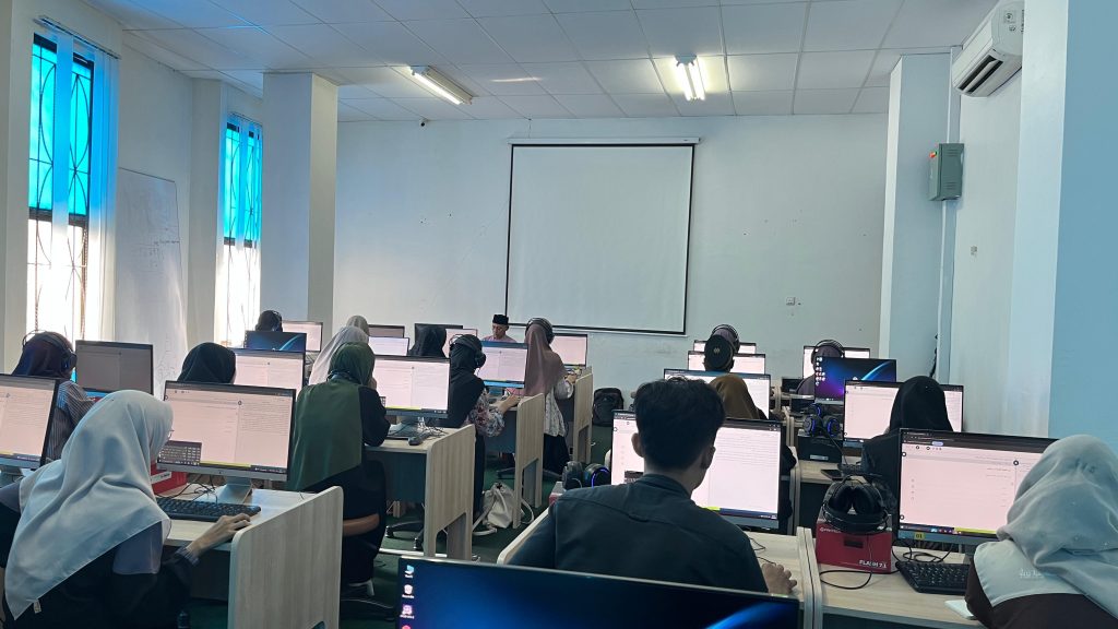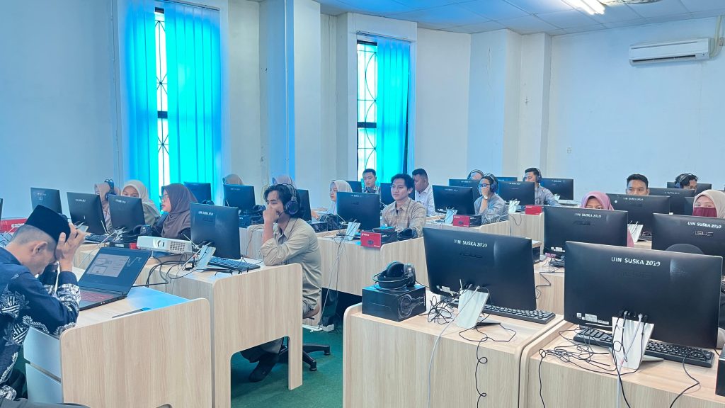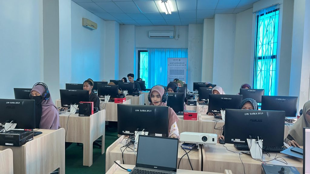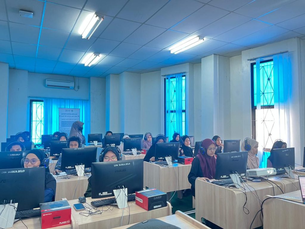 Mahasiswa Program Studi Pendidikan Bahasa Arab (PBA) UIN Sultan Syarif Kasim (Suska) Riau mengikuti Tes Hamzah yang diselenggarakan oleh Majma’ Malik Salman dari Arab Saudi. Kegiatan ini menjadi salah satu bentuk upaya peningkatan kompetensi bahasa Arab mahasiswa, khususnya dalam aspek kemampuan kebahasaan yang terstandar secara internasional.